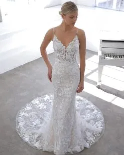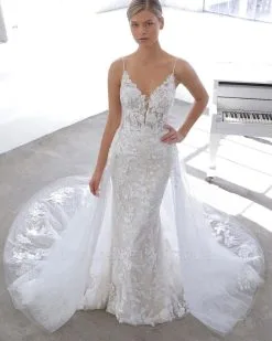 Be the first to review “Spaghetti Strap See-through Lace Column Long Wedding Dress With Tulle Overskirt” Cancel reply