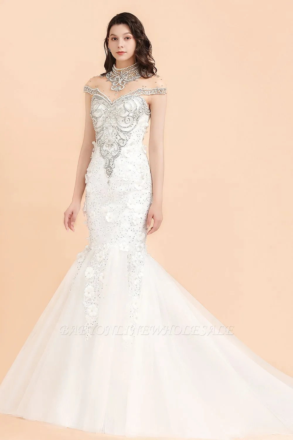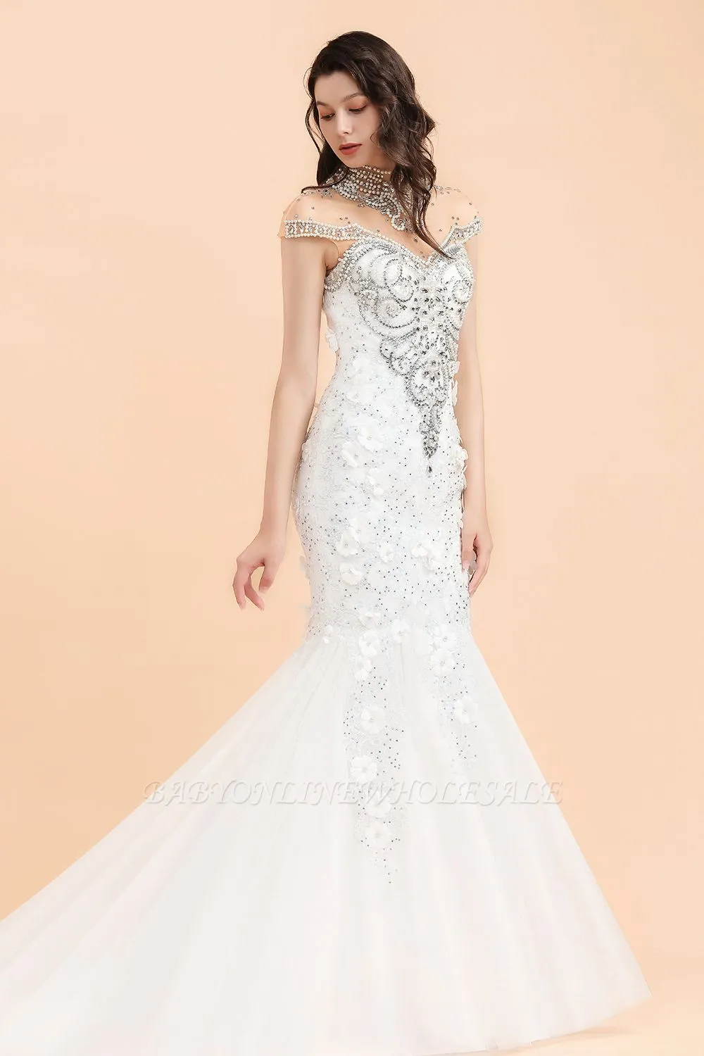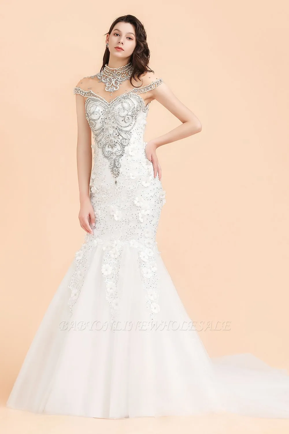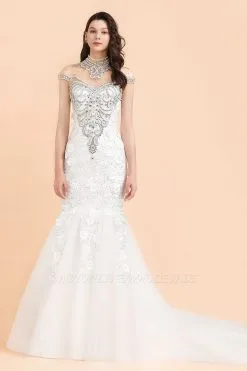 Babyonlinewholesale offers Sparkle High neck Mermaid Silver Beaded White Wedding Dress online at an affordable price from Tulle to Mermaid Floor-length skirts. Shop for gorgeous Sleeveless collections for your big day.