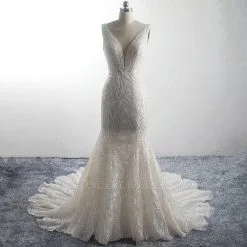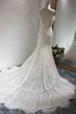 | product name | Sparkling A-Line V-neck Mermaid Sequins Floor Length Sleeveless Tulle Wedding Dress |