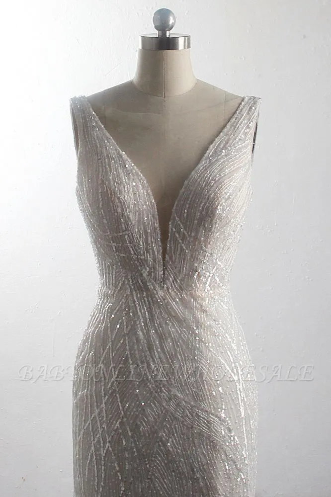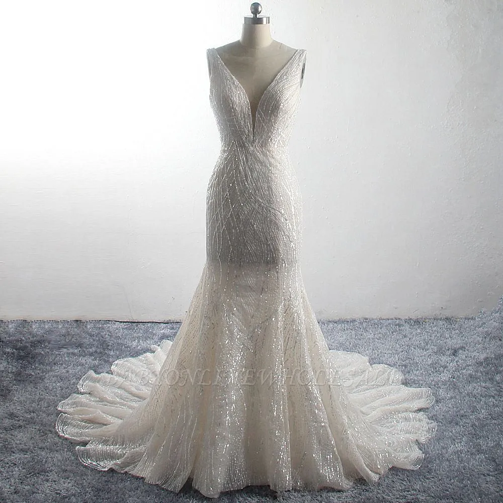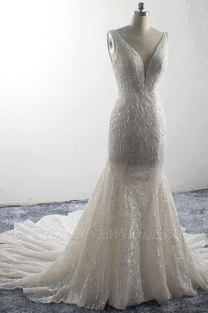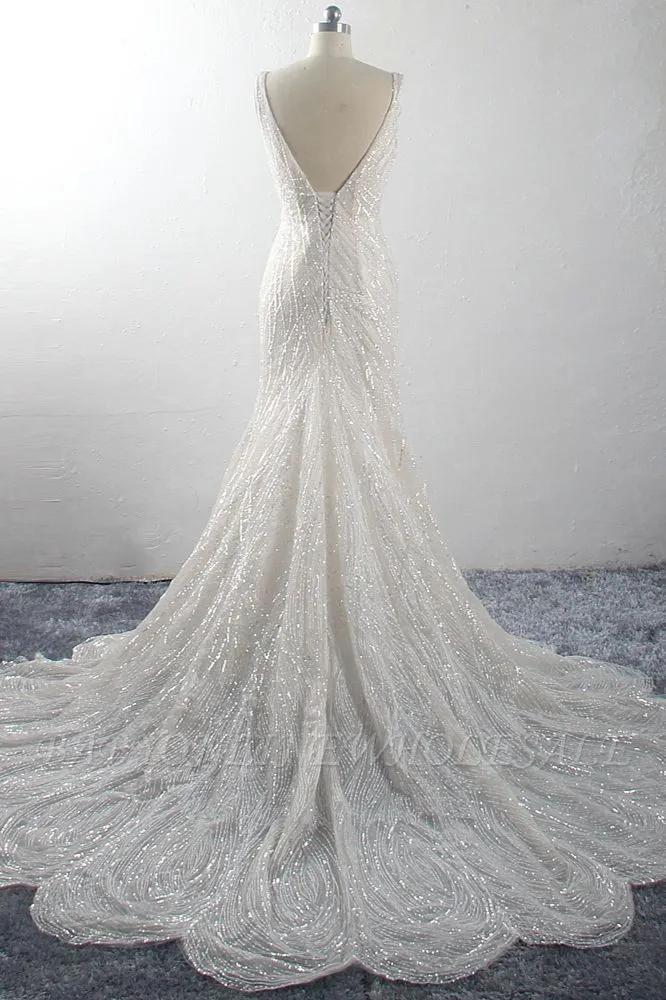 Babyonlinewholesale offers Sparkling A-Line V-neck Mermaid Sequins Floor Length Sleeveless Tulle Wedding Dress at the lowest price from White,Ivory,Blushing Pink,Red,Champagne,Tulle,Sequined to Mermaid Floor-length them. Stunning yet affordable Sleeveless .