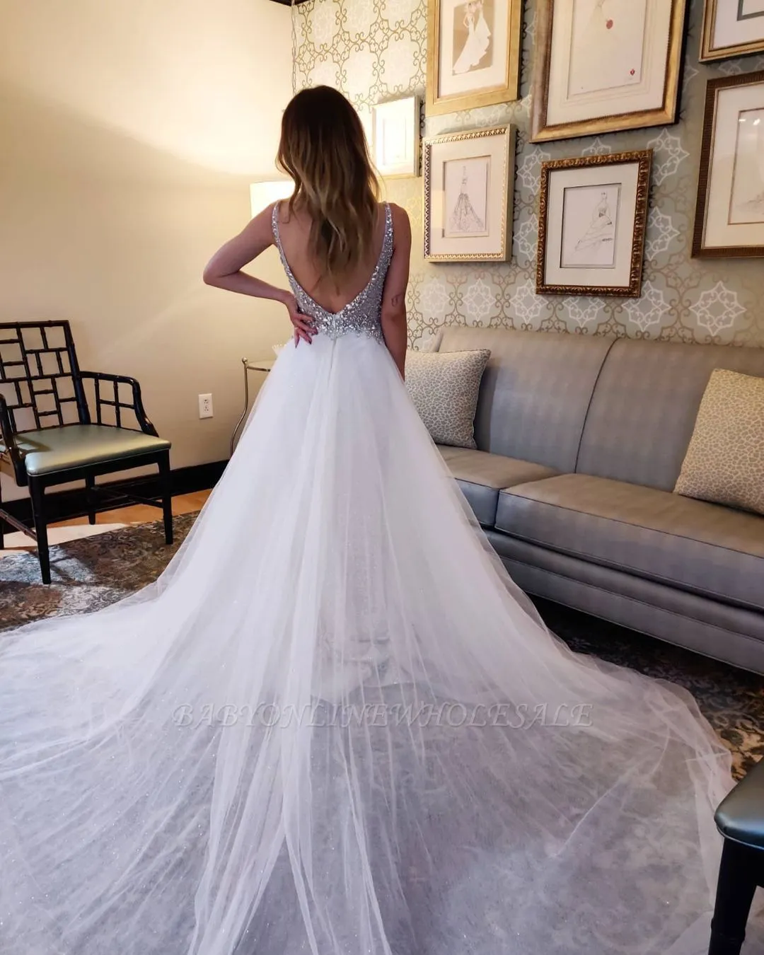 | product name | Sparkly Sequins V-Neck Backless Wedding Dress |