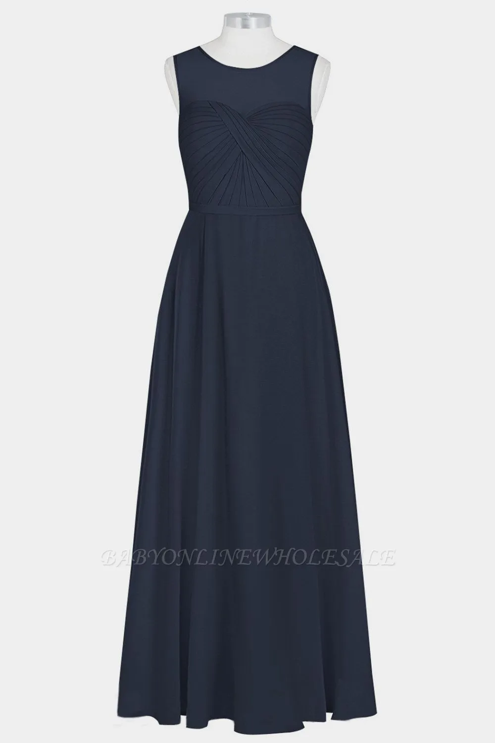 This modest Spring Chiffon A-line Bridesmaid Dress | Illusion Ruffle Maid of honor Dress will perfectly faltter the figure for every bridesmaid. The Jewel style and Floor-length skirt with Draped will provide the airy, flatter look for the summer weddings.