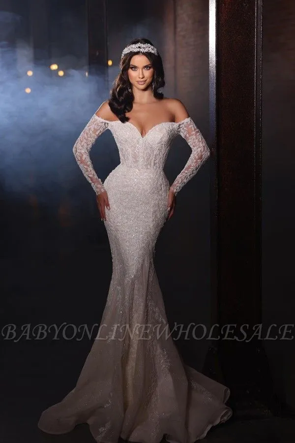 Babyonlinewholesale offers Sprkle Long sleeves off the shoulder mermaid wedding dress at a good price from Same as Picture,White,Ivory,Champagne,Black,Lace to A-line Floor-length them. Stunning yet affordable Long Sleeves .