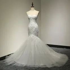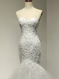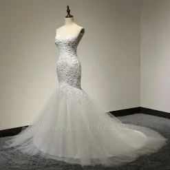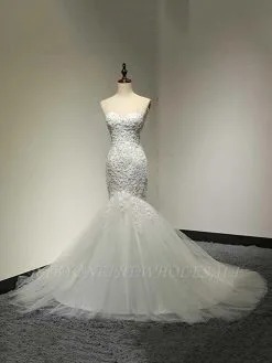 | product name | Strapless Appliques Mermaid Wedding Dresses, Pleated Tulle Bridal Gowns |
