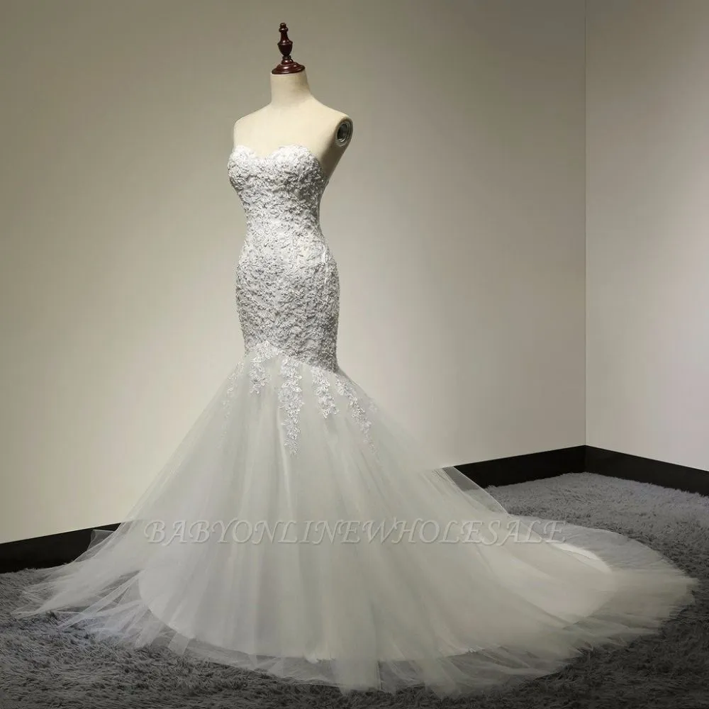 Strapless Appliques Mermaid Wedding Dresses | Pleated Tulle Bridal Gowns at Babyonlinewholesale comes in all sizes and colors. Shop a selection of formal dresses for special occasion and weddings in cheap price.