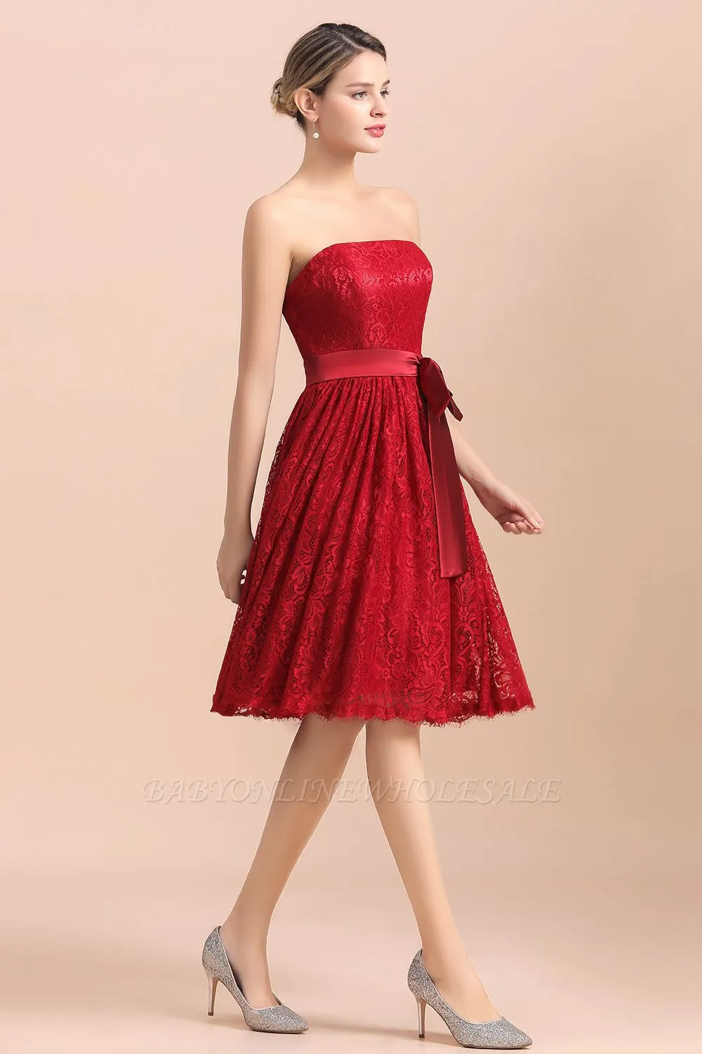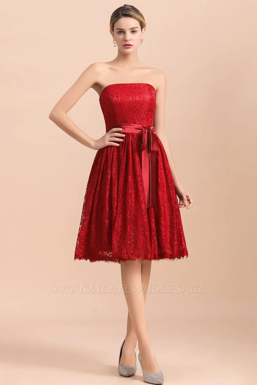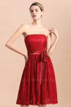 | product name | Strapless Red Evening Dress Satin Aline Wedding Guest Dress |