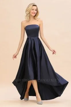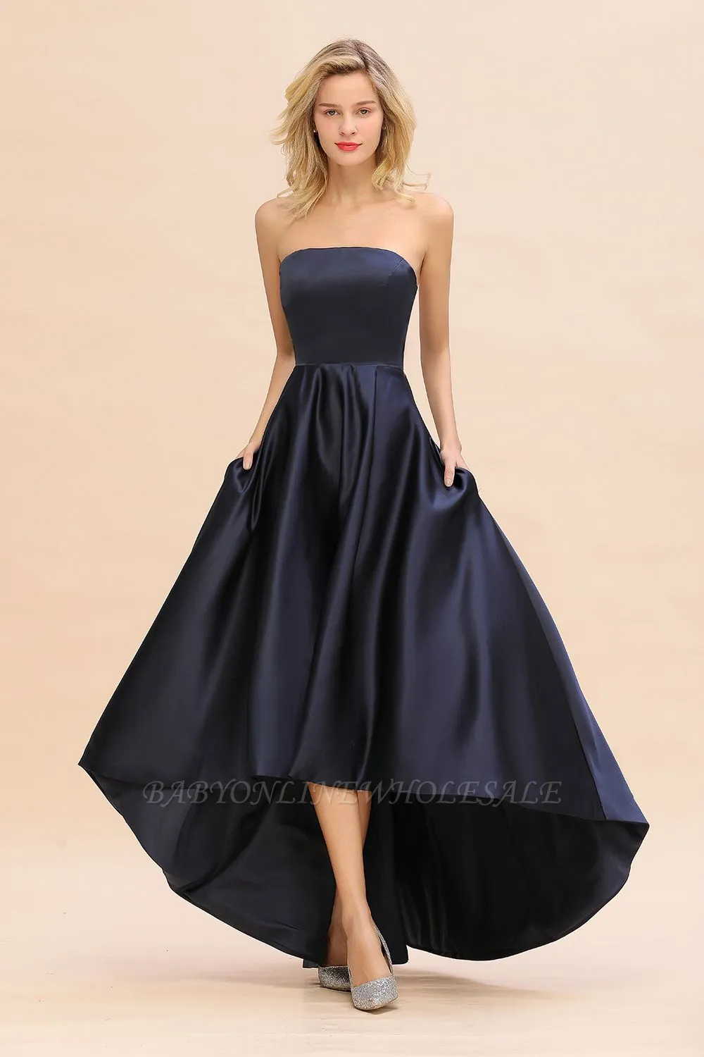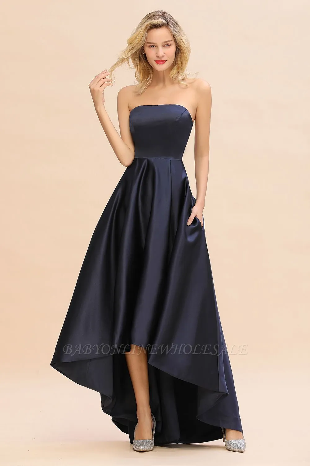 Looking for in Satin, A-line style, and elegant work? Babyonlinewholesale has all covered on this unique Strapless Satin Hi-lo Evening Party Dress Sleeveless Dress.