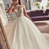 Exquisite Ivory Long Sleeveless A-Line Jewel Tulle Wedding Dress With Appliques