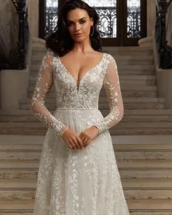 Elegant Lace Bridal A-line V-Neck Long Sleeves Wedding Dresses