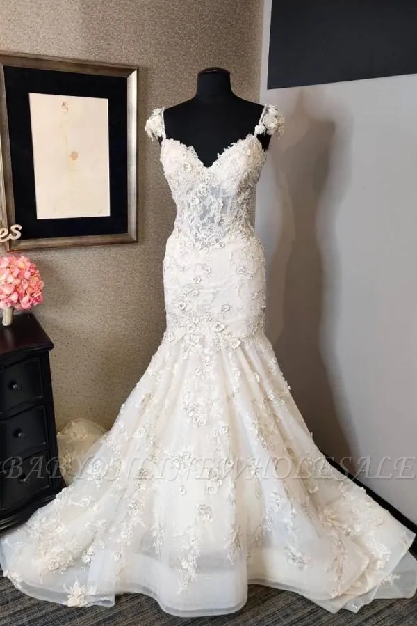 | product name | Stunning Mermaid Slim Wedding Gown Cap Sleeves Floral Lace Appliques |