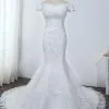 Sweetheart White Lace Mermaid Wedding Dress With Court Train