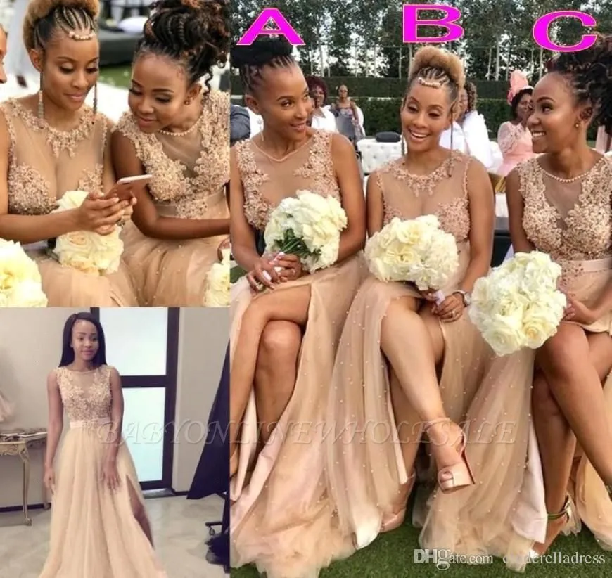 | product name | Stunning Tulle Lace Appliques Bridesmaid Dress with Side Split |