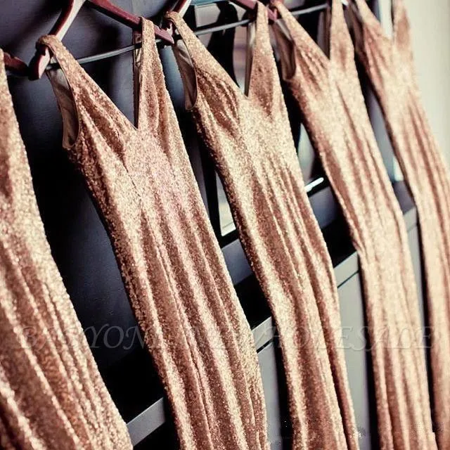 Babyonlinewholesale offers you high quality stunning sequins v-neck long gold bridesmaid dress floor length