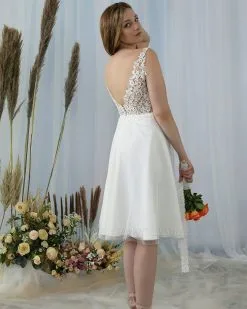 Be the first to review “Stylish V-Neck Floral Lace Short Wedding Dress Sleeveless Dress For Bride” Cancel reply
