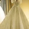 Gorgeous Long Sleeves Ball Gown Floral Lace Tulle Aline Bridal Gown