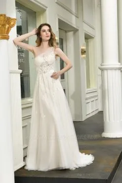 Wedding Dresses under $207 yet top quality for your big day. Babyonlinewholesale has Summer A-Line One Shoulder Tulle Lace Ivory Wedding Dress Online avilable in White, Ivroy and champange. Try this simple bridal gowns for your summer wedding.