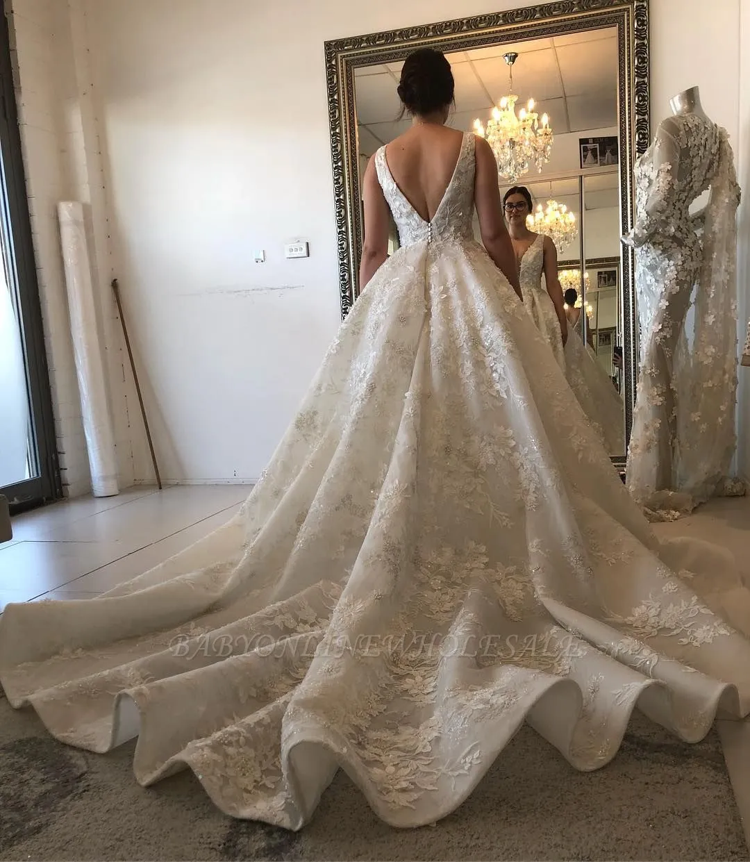 Looking for in , Ball Gown style, and Gorgeous Appliques work? Babyonlinewholesale has all covered on this elegant Summer Beach Plunging V-neck Ivory Princess Wedding Gowns.