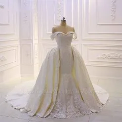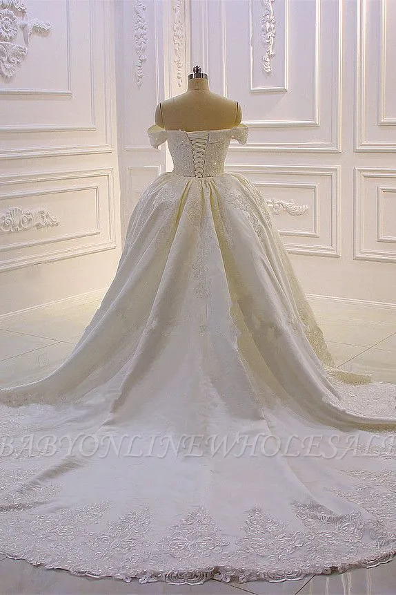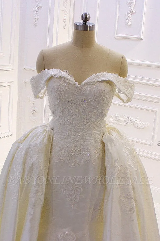 | product name | Sweetheart Lace Appliques Off-the-Shoulder Detachable Train Wedding Dress |