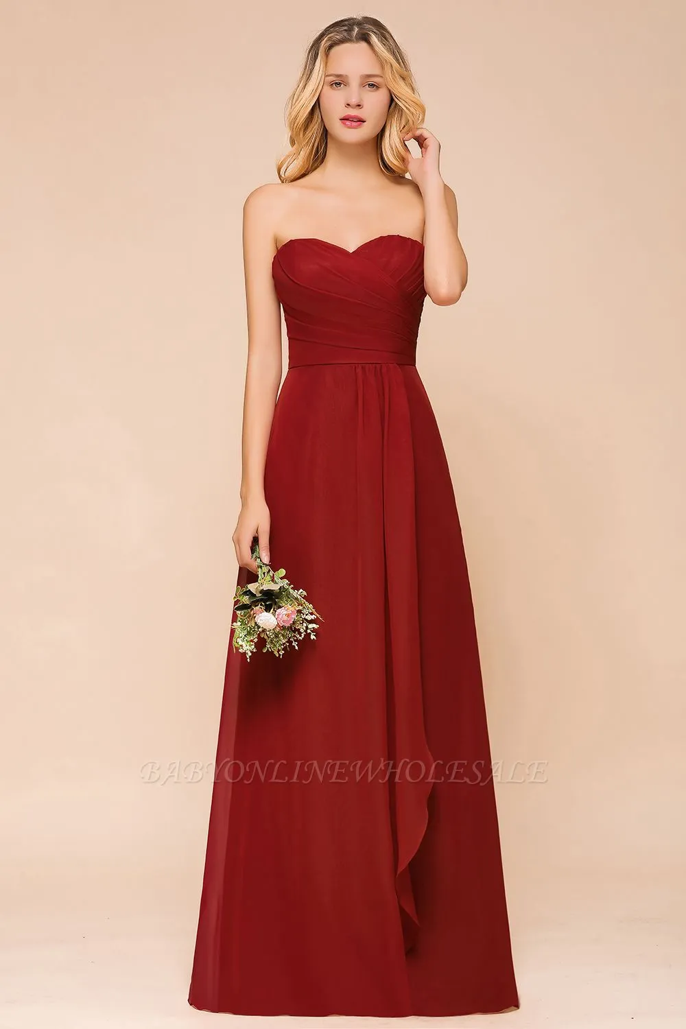 Looking for Bridesmaid Dresses in 100D Chiffon, A-line style, and elegant Draped work? Babyonlinewholesale has all covered on this unique Sweetheart Long Bridesmaid Dress Chiffon Sleeveless Evening Swing Dress.