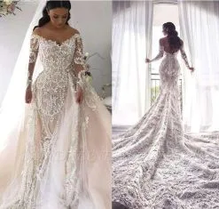 Gorgeous Ivory Off-the-shoulder Lace Long Sleeves Wedding Dress