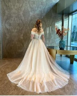 Off-the-Shoulder Sweetheart Tulle Aline Princess Wedding Dress