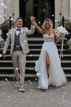 Be the first to review “Sweetheart Strapless White Tulle Wedding Dress With Side Split” Cancel reply