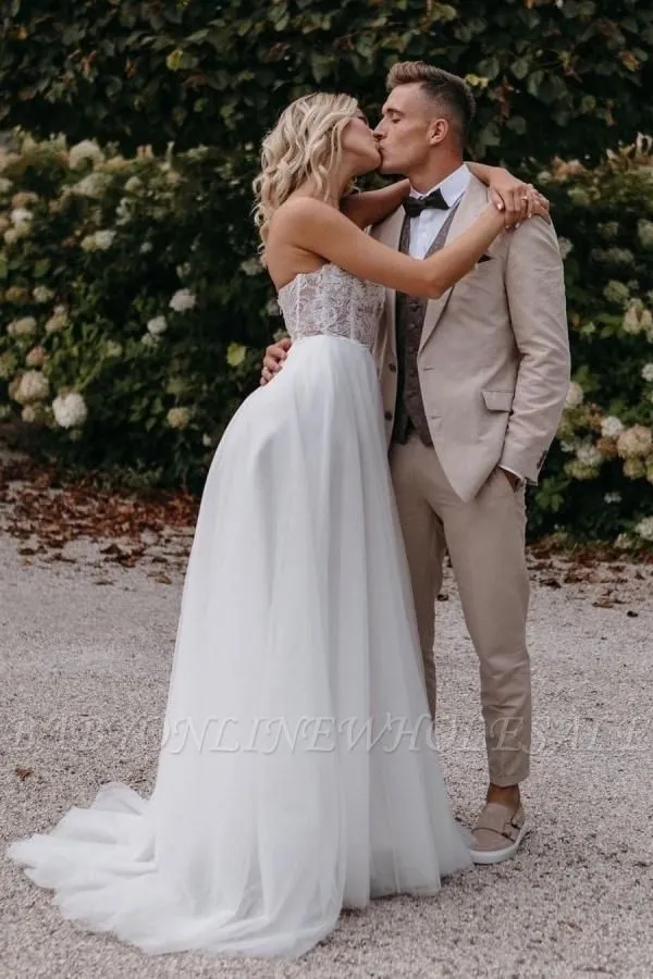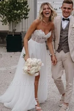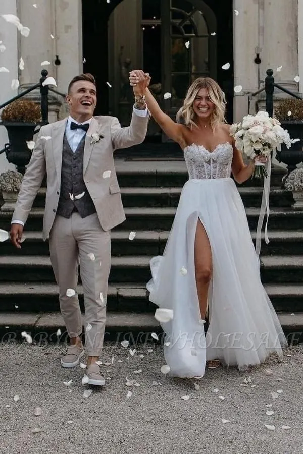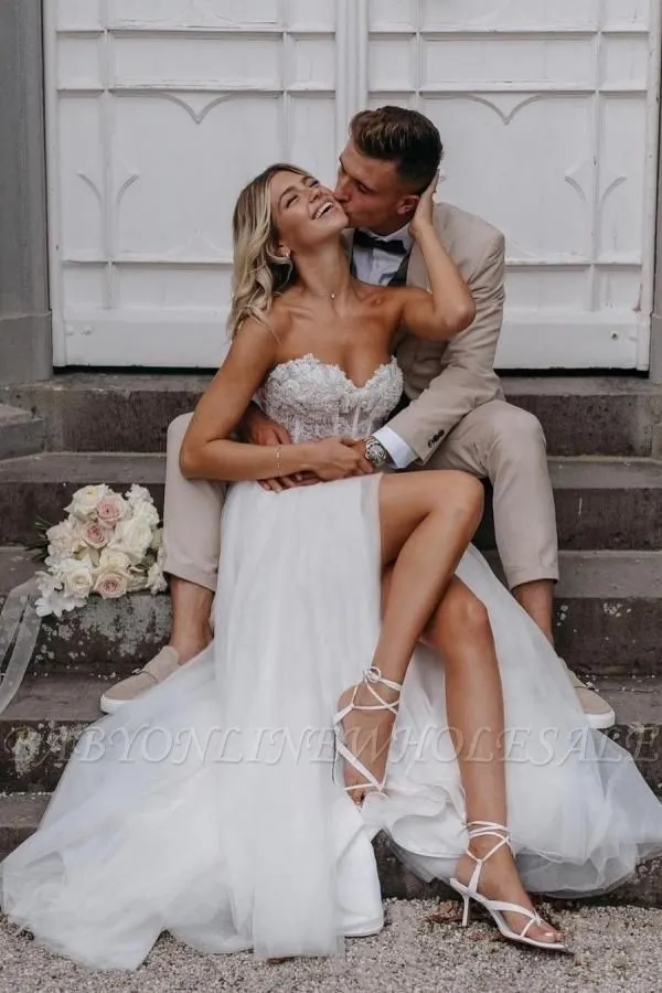 | product name | Sweetheart Strapless White Tulle Wedding Dress with Side Split |