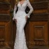 Luxurious V-Neck Crystals Mermaid Bridal Gown Long Sweep Train