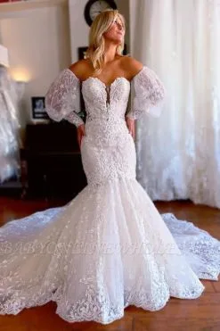 Looking for in Lace, Mermaid style, and Gorgeous Lace,Appliques work? Babyonlinewholesale has all covered on this elegant Sweetheart White Tulle Lace Bridal Gown Strapless Mermaid Wedding Dress.