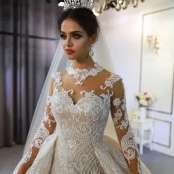 Babyonlinewholesale offers Trendy High neck Mermaid Lace Ivory Wedding Dress with Overskirt online at an affordable price from Tulle to Mermaid Floor-length skirts. Shop for gorgeous Long Sleeves collections for your big day.