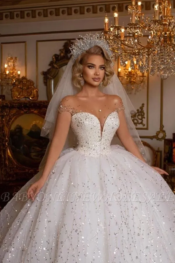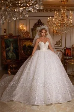Charming Sweetheart Sleeveless Sequined Strapless Ball Gown Wedding Dress