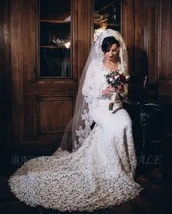 | product name | Tulle Lace Long-Sleeves V-Neck Long Mermaid Wedding Dress |