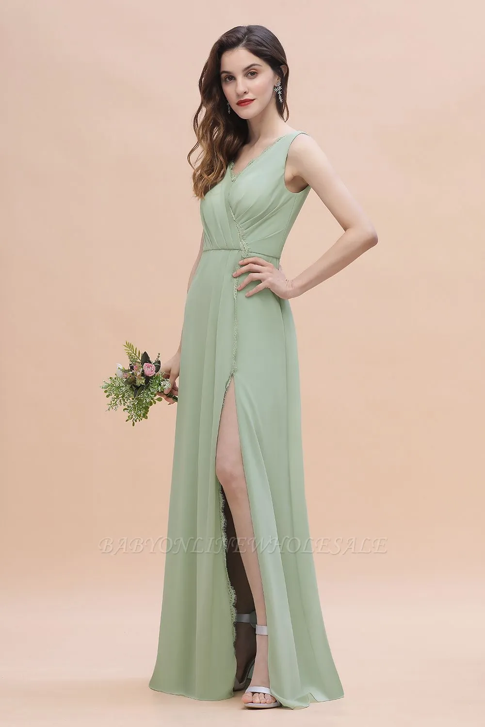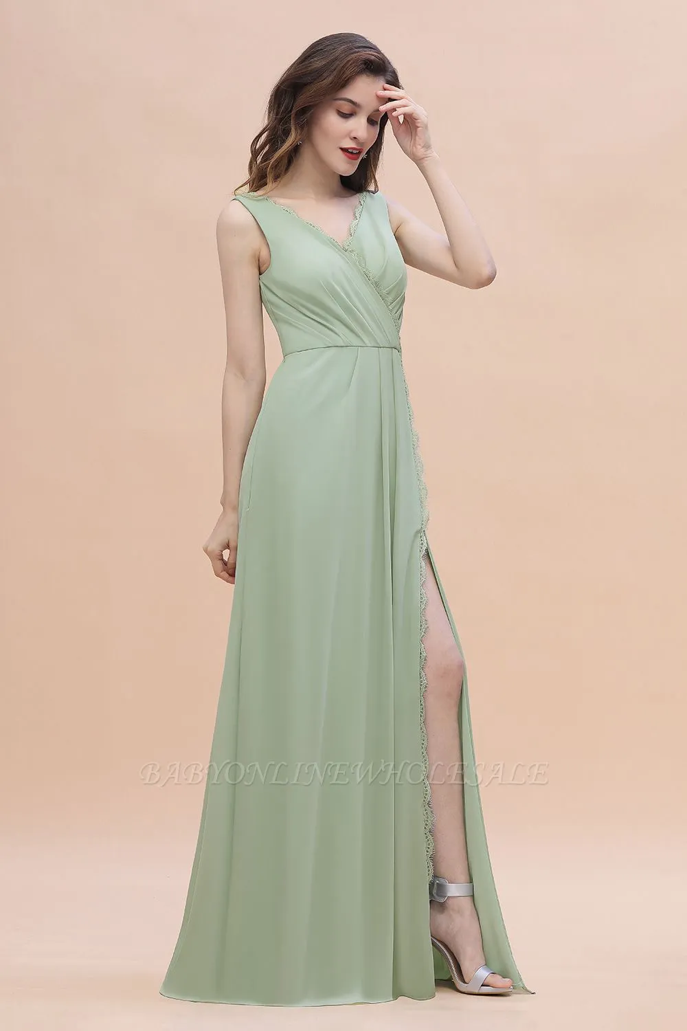 | product name | V-Neck Ruffle Chiffon Beach Wedding Guest Dress Aline Evening Dress with Side Slit |