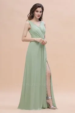Be the first to review “V-Neck Ruffle Chiffon Beach Wedding Guest Dress Aline Evening Dress With Side Slit” Cancel reply