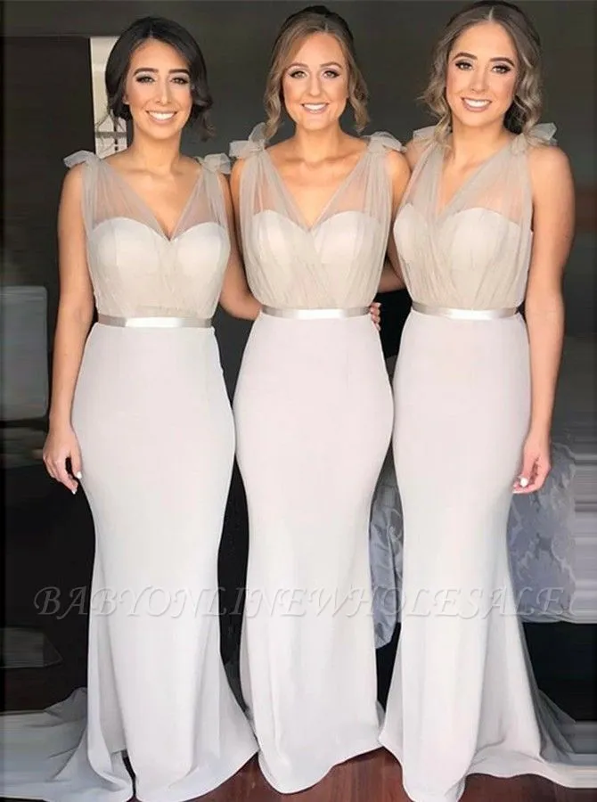 | product name | V-neck Sheer Tulle Sexy Bridesmaid Dresses, Sheath Sleeveless Maid Of Honor Dress |