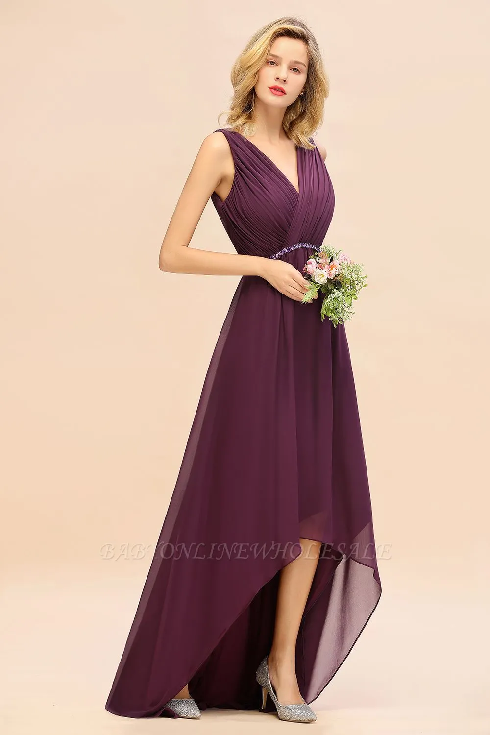 | product name | V-Neck Sleeveless Hi-Lo Bridesmaid Dress with Soft Chiffon |