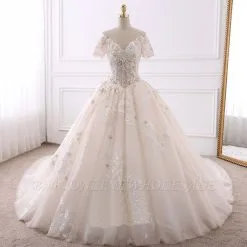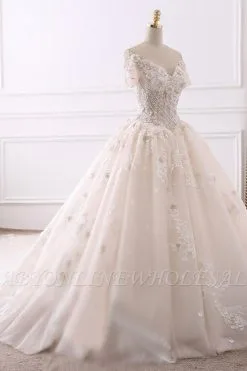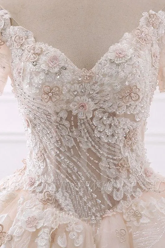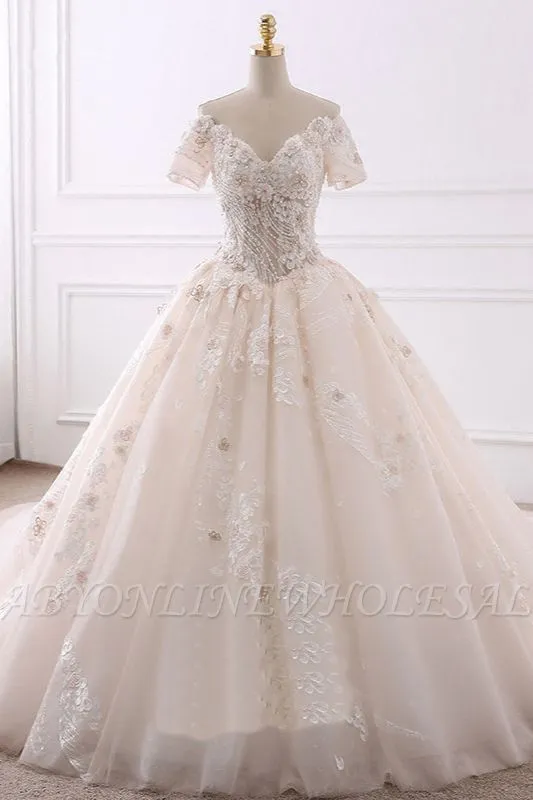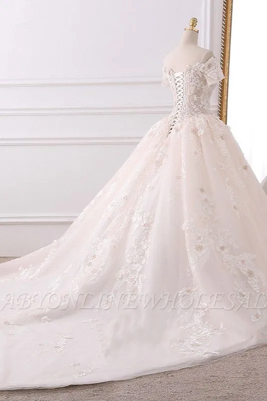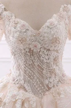 Luxury Ivory Ball Gown Off The Shoulder V-neck Wedding Dress