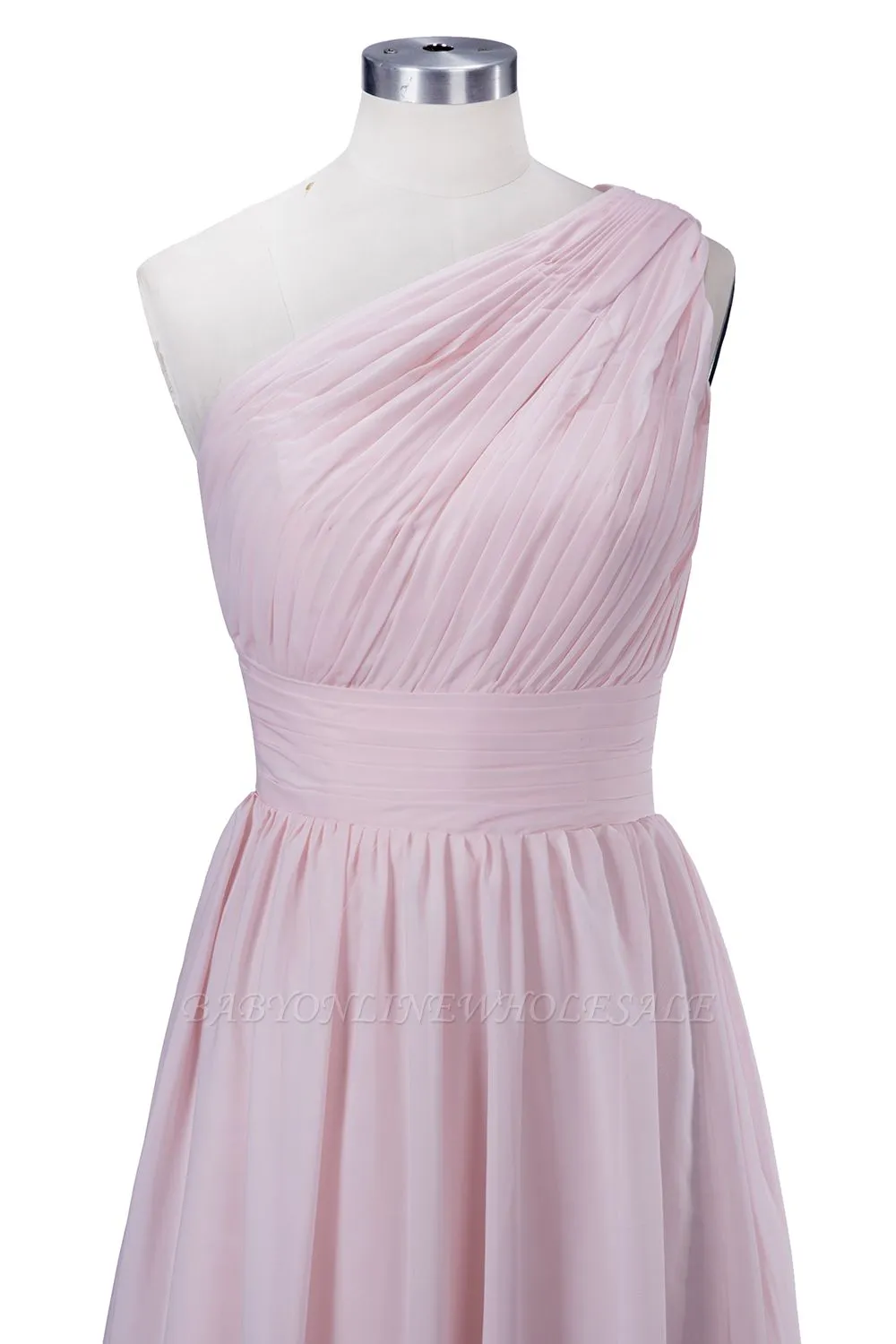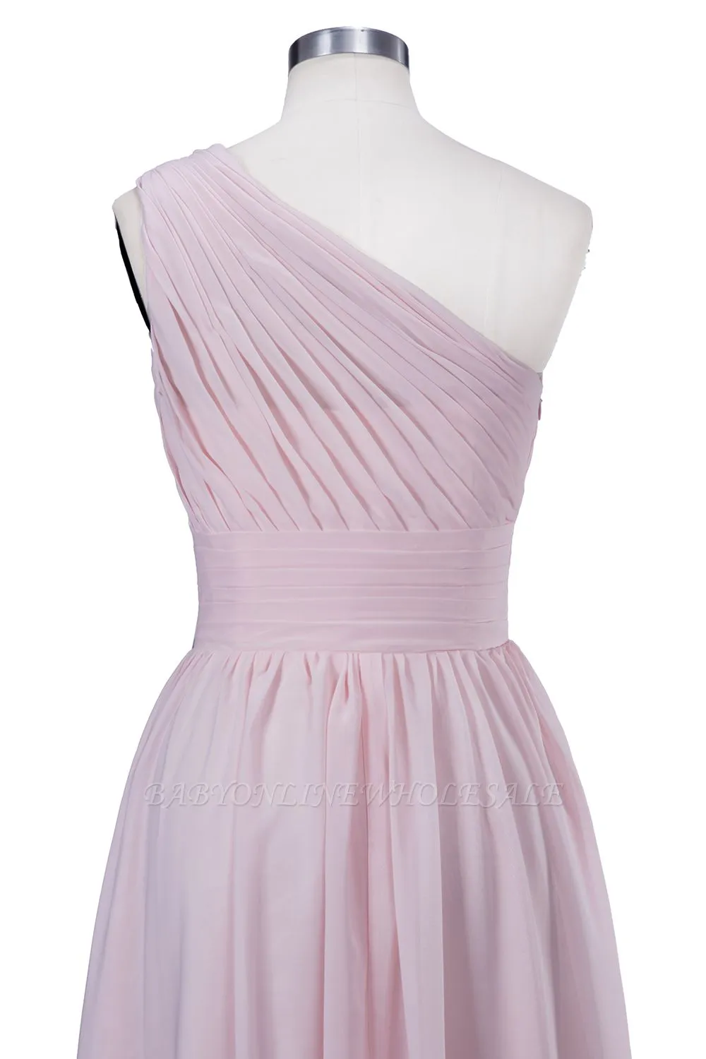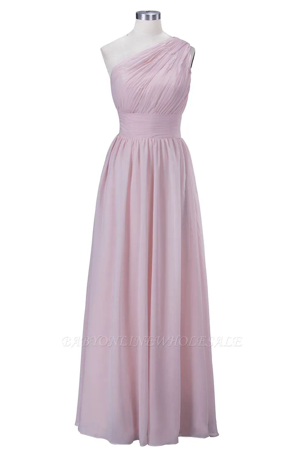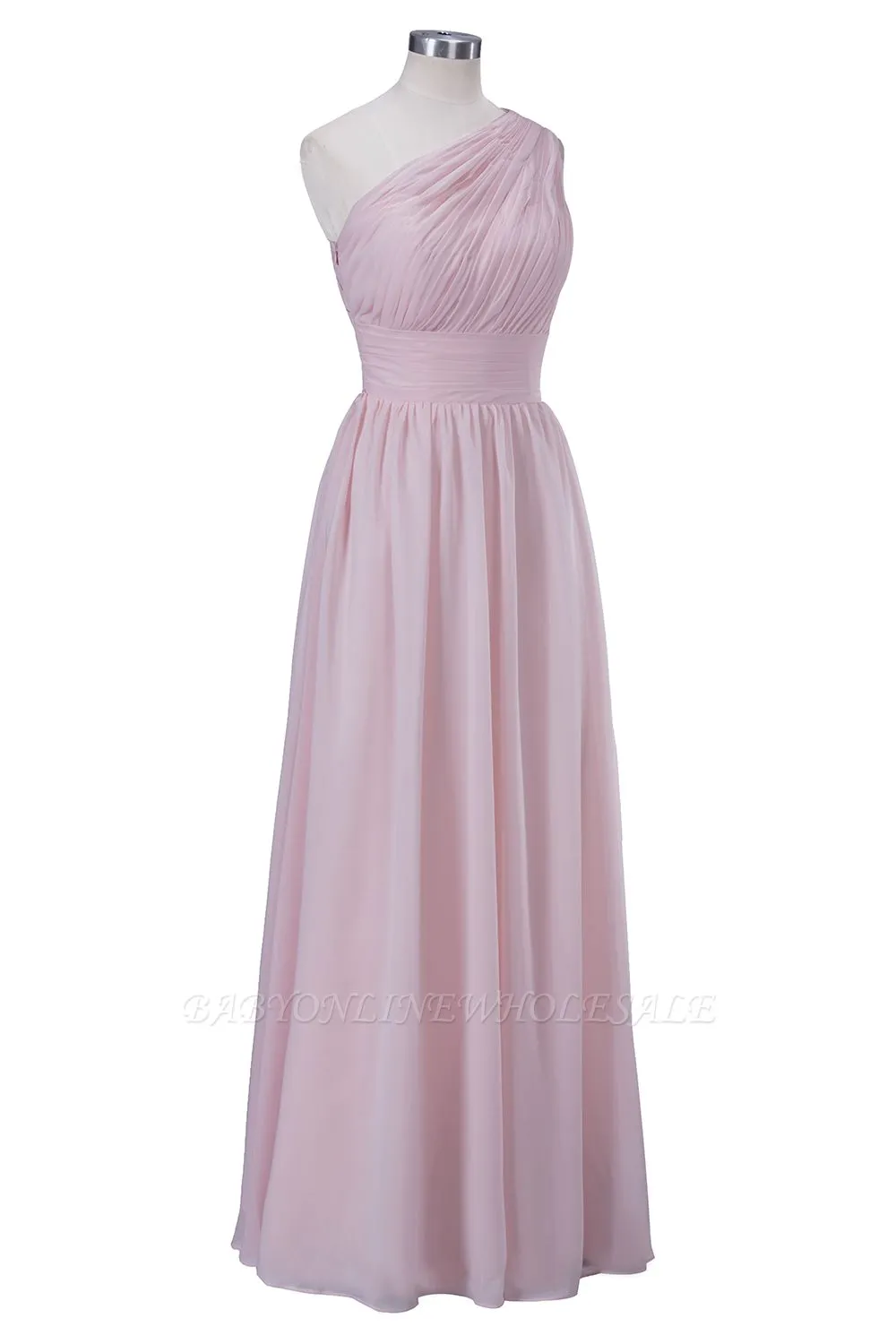 Babyonlinewholesale offers VIOLET | A-line One-shoulder Floor Length Ruffled Chiffon Bridesmaid Dresses at a cheap price from Blushing Pink, 30D Chiffon to A-line Floor-length hem. Stunning yet affordable Sleeveless Realdressphotos.