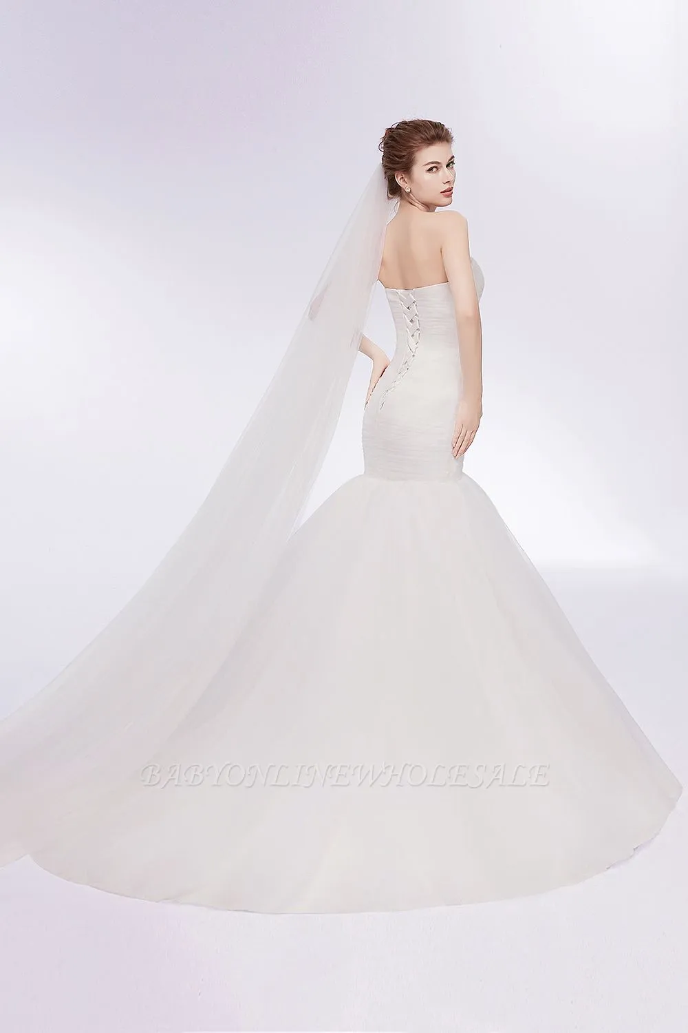 | product name | WANDA, Mermaid Sweetheart Strapless Ivory Tulle Wedding Dresses with Lace-up |