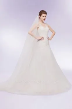 A-Line Applique Court Train Sleeveless Tulle Scoop Wedding Dresses