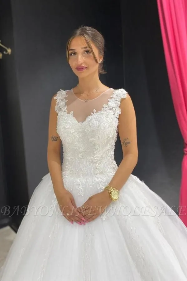 Babyonlinewholesale offers White/Ivory Sleeveless Jewel Pearls Beading Wedding Dress with 3D Floral Appliques at a good price from Same as Picture,White,Ivory,Champagne,Black,Lace to A-line them. Stunning yet affordable Sleeveless .