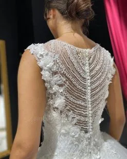 Be the first to review “White/Ivory Sleeveless Jewel Pearls Beading Wedding Dress With 3D Floral Appliques” Cancel reply