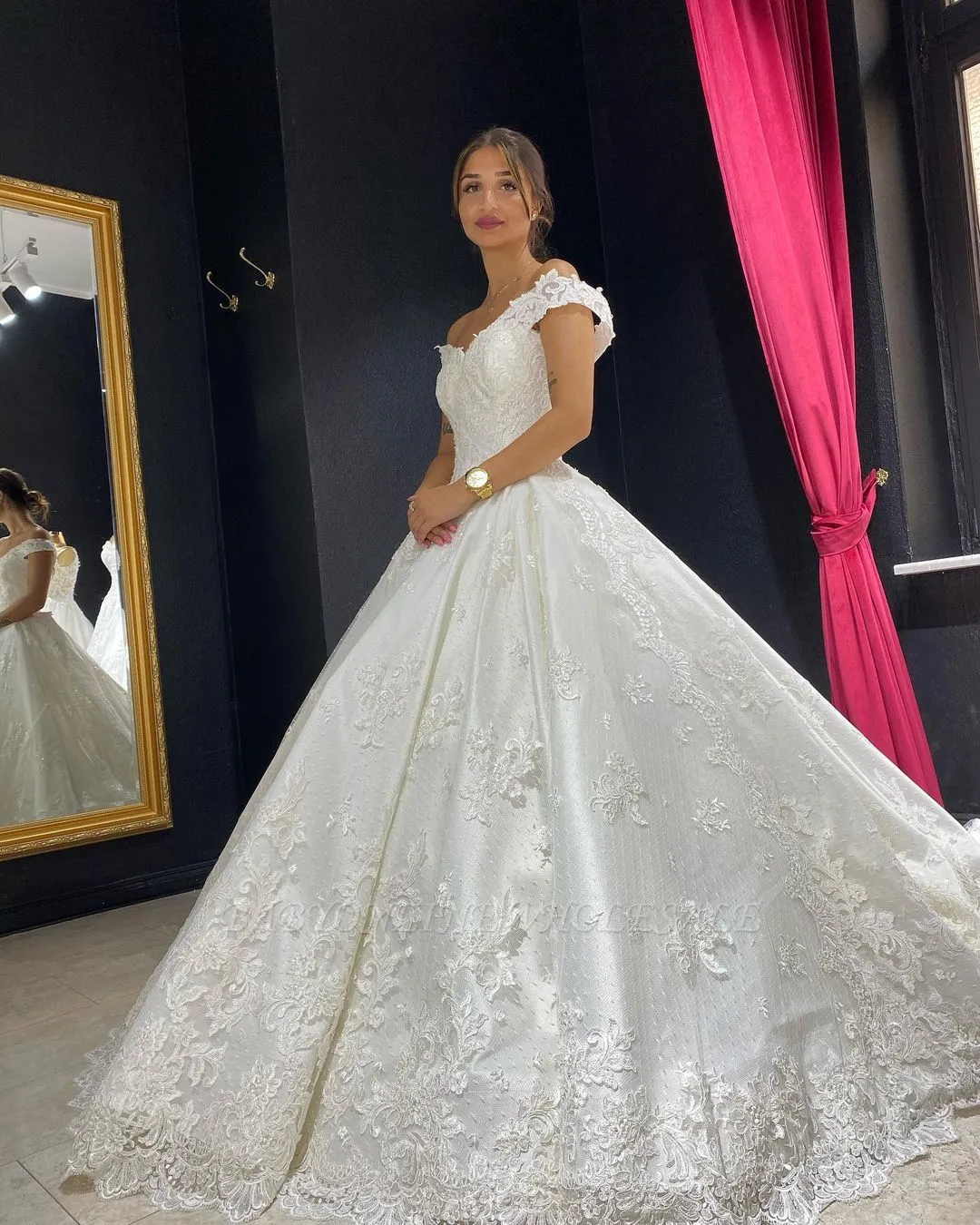 Gorgeous Ivory Off-the-shoulder Lace Long Sleeves Wedding Dress