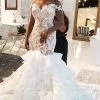 Gorgeous White Ruffle Sleeves Tulle Lace Appliques Mermaid Wedding Dress