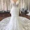 Off-the-Shoulder Sweetheart Floral Lace Mermaid Wedding Dress With Long Sleeves