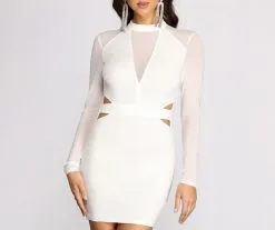 Command the room’s attention in this stunning litte number! The mini dress has chic cut outs to add some stylish edge.