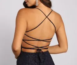 You’ll be feelin’ oh-so-girly in this pretty glitter knit mini dress! It features a square neck, a lace-up back, and a short, curve-hugging fit with an asymmetric hem. Pair this dress with a