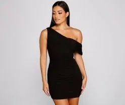 Make a stunning entrance with a formal mini dress that commands attention! Georgia features a one-shoulder neckline, a short sleeve accent, and a mini-length silhouette. The dress is composed of a smooth knit fabric that offers a form hugging fit with a moderate stretch. Complete look with