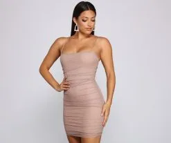 You’ll look oh so glitzy and beyond gorg in this glitter mini dress! Featuring ruched detailing to flatter your curves and a short, form-hugging fit, this dress is a must for date night. Simply add on some