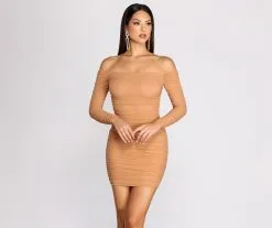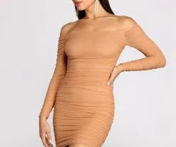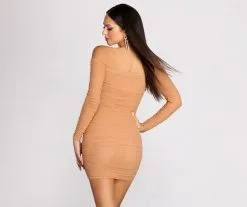 They’re def going to miss you when you leave in this hot mesh mini dress! It features a trendy, off-the-shoulder neckline, sheer long sleeves, ruching detail, and a form-hugging fit. Complete the look in statement